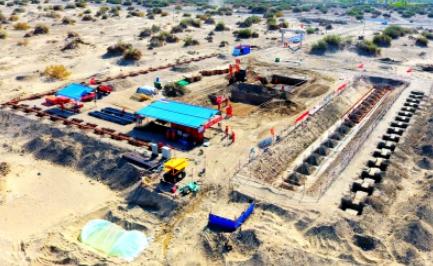 西北油田重点项目塔河油田110千伏输变电建设及系统优化工程施工现场。