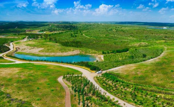 神东生态示范基地按照大自然原则进行规划布局,低洼地规划水域与湿地,平坦区域规划农田,陡坡地规划为林地,缓坡地规划草地,按照“1水2田3林4草”的比例开展沉陷区生态环境治理。