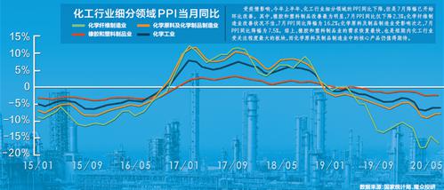 从二季度开始,国内企业逐渐复工复产,化工市场景气度和价格均有所回升。但随着夏季高温天气的到来,化工市场进入传统淡季,终端需求减弱,化工品多承受供应过剩的压力。另外,6~7月发生在长江中下游地区的洪涝灾害,导致部分终端生产厂家停车降负,也对部分化工产品的生产及运输情况造成影响,进一步减弱了市场需求。不过,一旦天气好转后新一波赶工潮到来,基建需求或仍将处于相对旺盛的水平。