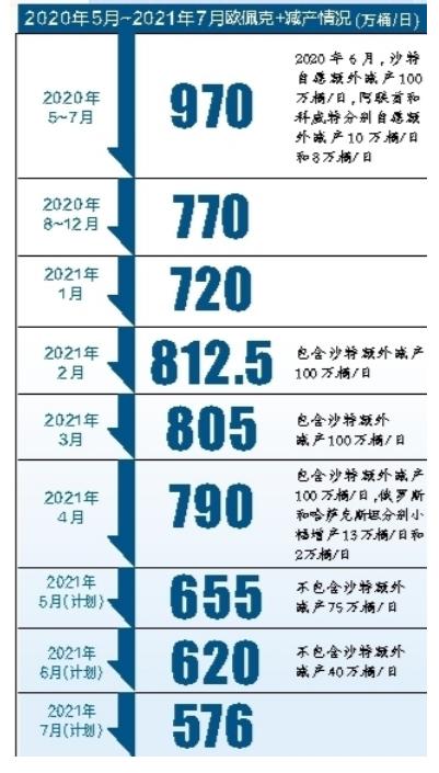4月1日,欧佩克和非欧佩克产油国召开第15次部长级会议。据美国有线电视新闻网(CNN)报道,欧佩克和非欧佩克产油国同意5月增产35万桶/日,6月再增产35万桶/日,7月增产约44万桶/日。沙特阿拉伯还表示,将在未来3个月内逐步取消100万桶/日的额外减产,即5~7月分别将自愿减产计划减少25万、35万和40万桶/日。沙特能源大臣阿卜杜勒·阿齐兹·本·萨勒曼将会议达成的放松产量限制的措施称为“非常保守的做法”。对外经济贸易大学国际经济贸易学院教授、国家对外开放研究院研究员、一带一路能源贸易与发展研究中心主任董秀成接受记者采访时表示,欧佩克+达成逐步放松减产限制的结果是符合预期的。前段时间,国际油价上涨较快,3月8日,布伦特油价个别时段曾经一度冲至70美元/桶。欧佩克和非欧佩克产油国的目标是一致的,即通过调整产量来稳定油价。油价上涨是一把双刃剑,油价上涨过快,虽然对产油国有利,但是也会导致北美页岩油的产量增加,一旦供需关系再次失衡,价格还会下跌。同时,当前的国际油价无论对于欧佩克还是非欧佩克国家都是可以接受的。