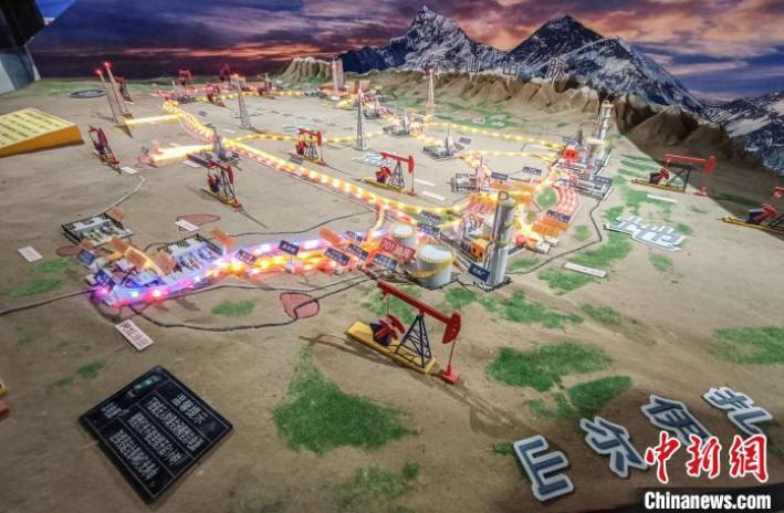 ”已打通的环准噶尔盆地油气骨干输送环网沙盘模型。苟继鹏摄