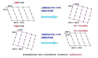 孤岛油田西区北馆3-4区块两套开发层系动用程度相差2.8个百分点,上下开发层系井网互换、流线整体改变40度后,区块日增油33吨,日产液下降701吨,含水率下降18.1个百分点,吨油运行成本下降183元。
