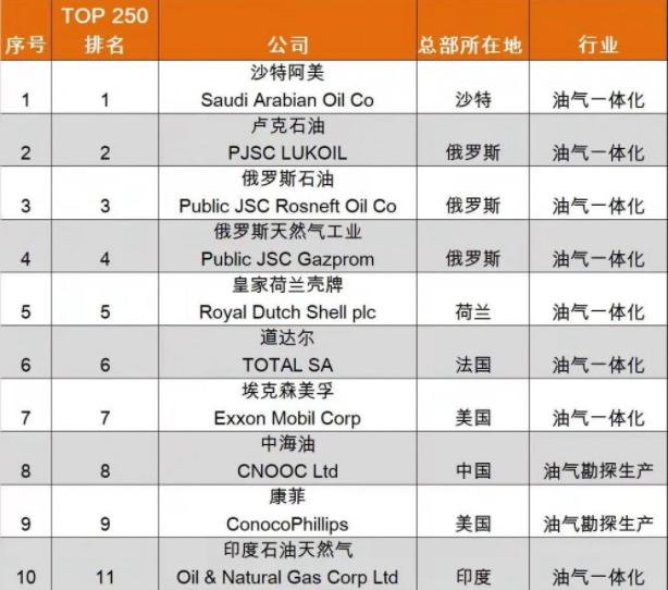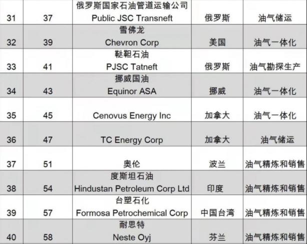 此次进入榜单的多是国家石油公司,除了中国“三桶油”,比如沙特阿美、俄油、俄气、奥地利石油、印度石油、巴西国油、泰国国油、波兰国油、哥伦比亚国油等。