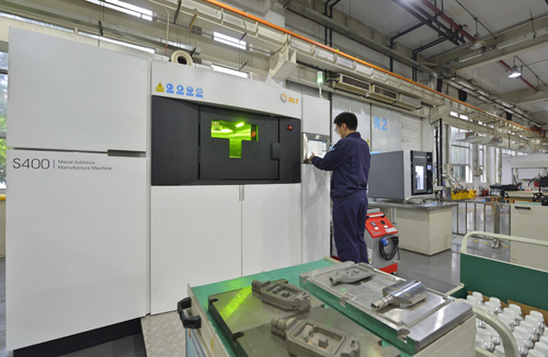 中油测井员工操作金属3D打印机器,打印微扫极板。胡彦峰摄