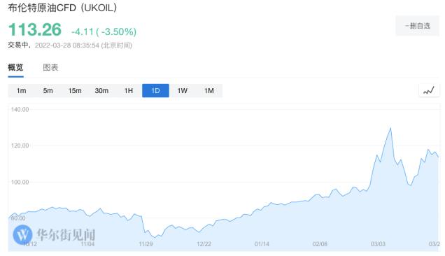 国际油价基准布伦特原油在经历两周回调后,上周累涨9%。截至发稿,布油跌3.5%,报113.26美元/桶。