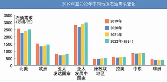 展望2022年,石油需求仍将保持逐步恢复态势,预计同比增长323万桶/日,达到1.0258亿桶/日,高于新冠疫情前水平。需求增长主要来自于亚洲发展中国家和欧美地区。布伦特均价预计为80—85美元/桶。