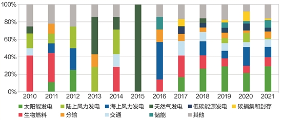 2010—2021年国际石油公司低碳投资领域和占比情况图片数据来源:IHSMarkit