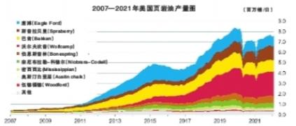 近几年,美国页岩油产量快速增长,已成为页岩油产量最高的国家,2020年美国原油总产量为5.75亿吨,其中页岩油产量为3.78亿吨,约占原油总产量的66%。