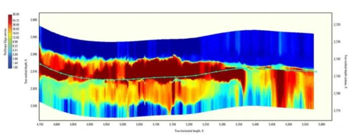 PeriScopeEdge服务使用新型深电阻率技术和横向天线进行多向测量,该技术的确定性参数反演(DPI)技术一次最多可以映射八层,提供半径大于25ft的清晰探测,在复杂的储层设置中提供更大的探测深度范围和更高的映射分辨率,即使在3英尺或更薄的层中也能清晰地描绘边界。