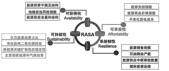 报告首次提出RASA全球能源安全评价体系,对“全球能源安全”定义为:世界能源供需总体平衡、国际贸易顺畅、使用价格合理可承受、对环境友好可持续,并具备良好抗冲击和恢复能力的状态。