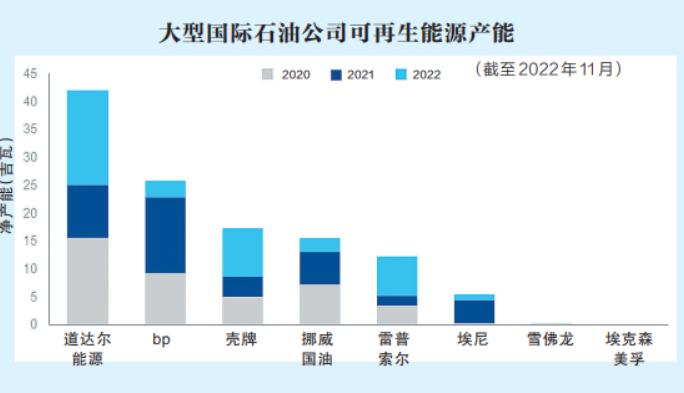 大型国际石油公司的可再生能源业务得到政府的大力支持,但仍受到竞争加剧、供应链困局、获得许可和电网接入限制等不利因素的影响。2023年对于绿氢的发展也很关键,油气公司需要厘清与之有关的过度炒作和现实之间的差距。绿氢相关业务可能大量增加,可再生能源和氢气行业的竞争态势将进一步加剧。引领可再生能源发展步伐的油气公司将站稳脚跟。主推能源转型的道达尔能源可能成为2023年第一家从可再生能源领域获得10亿美元息税折旧摊销前利润的油气公司。欧洲大型国际石油公司的工作重点将转移到可再生能源项目的执行上,项目延误和成本超支的风险也可能在新的一年内加剧。