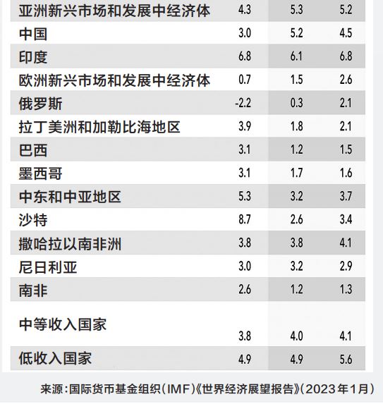 国际货币基金组织(IMF)副总裁吉塔·戈皮纳特在世界经济论坛年会上称,“2023年全球经济状况预计不会变得更艰难,从今年下半年到明年,全球经济状况有望进一步改善”。本届年会结束后,1月31日,IMF发布《世界经济展望报告》预计,2023年全球经济增长速度为2.9%,这已比去年10月预测的2.7%提高了0.2个百分点。