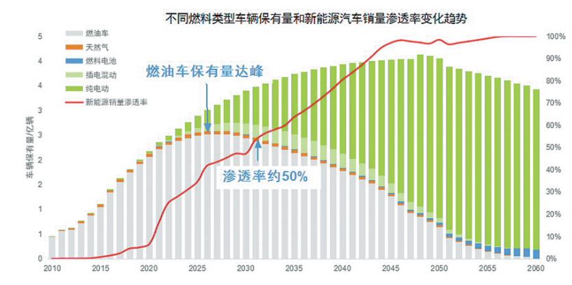 从不同类型基础设施格局来看,2030年前油气站规模仍在90%以上,占主体地位,2030年后新型交通基础设施将快速取代传统基础设施,到2040年,预计油气站规模快速萎缩三四成,到2060年仅剩少量物流车和专用车将油气作为燃料。留给传统基础设施转型的时间仅有5~10年,甚至更短。