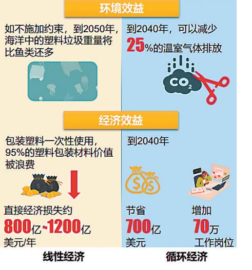 据联合国环境规划署保守估计,在全球范围内塑料包装低效循环的环境成本大概是400亿美元,塑料包装材料的价值约有95%因为一次性使用而浪费,每年将造成800亿~1200亿美元直接经济损失。
