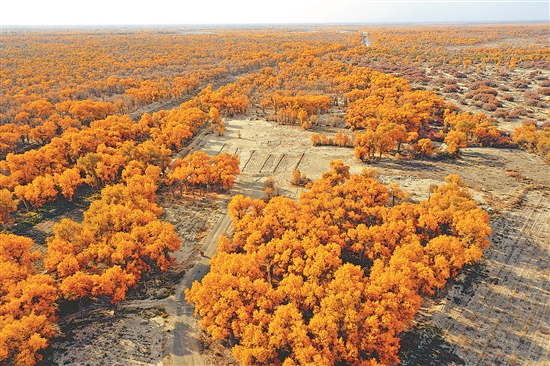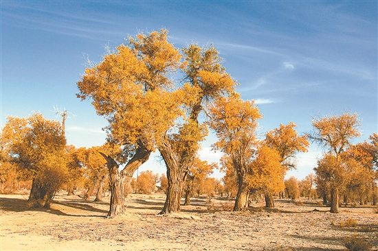 三塘湖万亩胡杨林 井场退出后的胡杨林在秋季千姿百态。李涛 摄