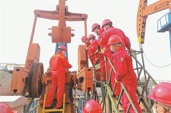 冀东油田员工正在进行抽油机操作培训。许亚丽 摄