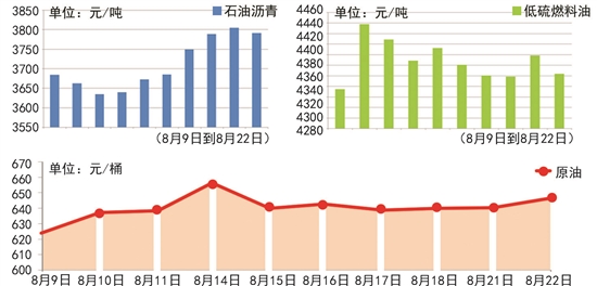 国内主要石油化工期货行情信息(8月9日至8月22日)