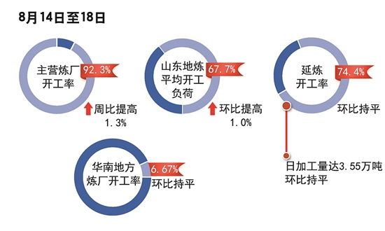 8月14日至18日,正值暑期出行高峰期,汽油需求依旧旺盛,部分海域休渔期结束,且随着“金九”旺季临近,柴油备货需求亦有提升。