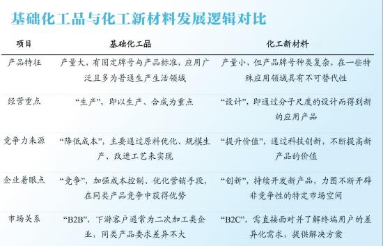 一是基础化工品与化工新材料发展逻辑有诸多不同。西方国家更早实现了发展逻辑的转变,而我国正在经历逻辑换挡阶段。