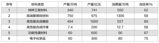 一是低端材料供应过剩,但高端化、差异化材料开发不够,部分重点材料自给率低,如茂金属聚乙烯和聚丙烯的自给率仅为10%,EVA树脂为48%,POE和EVOH树脂、超高压电缆超纯绝缘聚乙烯专用料、乙烯-丙烯酸丁酯共聚物(EAA)、部分电子化学品等完全依赖进口,材料供给结构性矛盾突出。二是许多新材料关键核心技术受制于人,特别是一些对外依存度高的化工新材料的合成技术、催化剂技术、关键原料生产技术,尚处于从中低端产品自给自足向中高端产品自主研发、替代进口的过渡阶段。三是市场竞争主体呈现外企、国企、民企多元化格局,市场细分明显、竞争日益激烈;产能分布“小、杂、散”问题突出,上中下游企业衔接不紧密,缺少领军企业引领,产业协同发展不足,整体竞争力较弱,需要全行业加强合作与协同创新。(黄格省 王红秋 师晓玉 丁文娟 中国石油石油化工研究院)