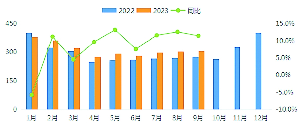 1~9月,在我国经济总体回升向好、国际天然气价格明显回落、去年低基数三重因素共同支撑下,全国天然气消费规模2837亿立方米,同比增长7.7%。