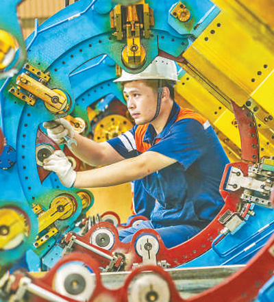 安徽马鞍山经开区,工人在装配冶金智能装备产品。