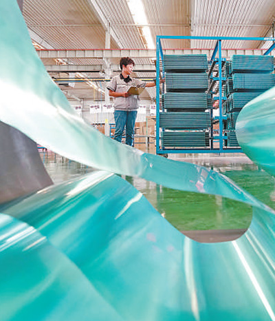 今年,我们将晶硅—钙钛矿叠层电池转换效率从29.55%提升到33.9%,刷新纪录。根据测算,光伏电池转换效率每提升1个百分点,可为电站节约成本5%以上。