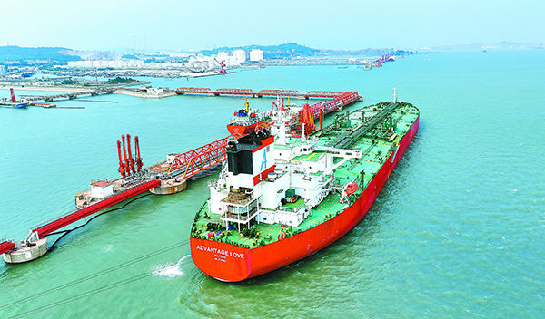 “臻爱”号油轮靠泊码头装载柴油。邱爱民 摄