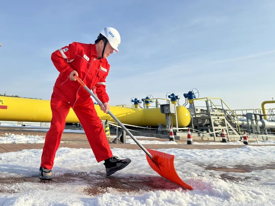 新疆霍尔果斯2月17日气温降至零下24摄氏度,伴有20-30毫米降雪,阿拉山口瞬时风力达到了12级。所属新疆公司霍尔果斯计量站增加巡检频次,安排专人清扫工艺区积雪,密切关注电伴热运行情况。阿拉山口计量站加强对计量间暖气管线检查力度,加固站场、生活区房屋门窗及室外消防设施,熬制姜汤为室外巡检人员驱寒。中哈原油管道、西北原油管道提前落实各项寒潮防范技术措施,持续开展输送油品凝点、沿线气温等信息监测,加强管道和场站关键设备设施巡护检查和应急值班值守,确保了原油输送稳定。