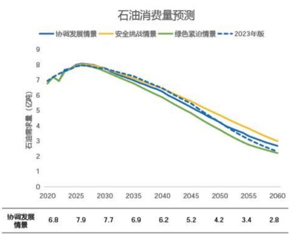 为回答以上问题,前不久,中国石化经济技术研究院发布《中国能源展望2060(2024年版)》系列报告。报告显示,我国石油消费在疫情后恢复增长,2023年增至7.6亿吨,预计“十五五”中期达峰在8亿吨左右,到2060年降至2.8亿吨。由于新能源汽车发展速度不断超出预期,我国石油消费峰值平台期将缩短为3~5年。2030年前后,石油的化工原料属性将超越交通燃料属性。本版专题对未来国内石油需求进行分析预测,以供借鉴。