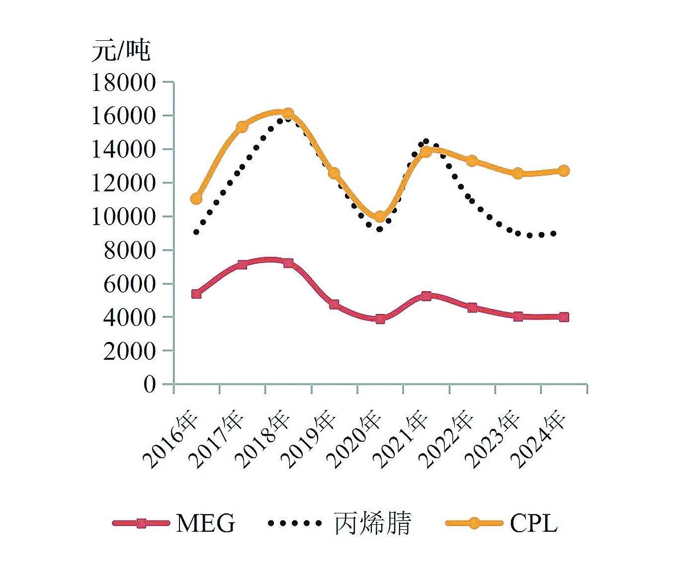 2023年全球经济增长动能减弱,经济发展存在明显的地区差异,美联储控通胀决心和加息次数超年初预期,国际油价呈现震荡下行走势,合原产品均价持续下降。因供应过剩加剧,丙烯腈价格下降18%、乙二醇下降12%、CPL下降12%,下降幅度较大;PX(对二甲苯)下降1%、PTA下降5%、PET(聚对苯二甲酸乙二醇酯)切片减少5%,下降幅度较小。