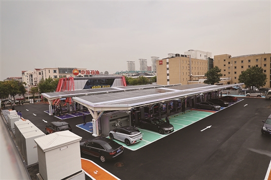 值得一提的是,苏州花桥综合能源站积极响应国家“双碳”目标,在站内配备了光伏和储能设施,利用太阳能进行发电并储存能量,以供夜间和高峰期使用,为构建低碳能源生态圈和实现可持续发展作出贡献。(杨帅?摄影报道)