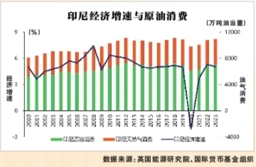 印尼经济发展和强劲内需需要油气产业支撑。印尼是东盟国家中油气资源最丰富的国家,油气产业在经济发展和财政收入中占据重要地位。印尼是世界第四人口大国,中青年人口比例超过60%。根据世界银行2023年的数据,印尼以其人均国民总收入达到4580美元的标准,被正式列为“中上收入国家”。受城市化进程加快助推,印尼2030年的中产阶层人群数量预计将达1.4亿人,占总人口的近50%。亚洲开发银行今年5月预计,强劲的个人消费和投资将推动印尼今明两年的国内生产总值(GDP)增长5.0%。2023年,印尼原油消费约7031万吨,超过一半需求依赖进口;印尼天然气消费约454亿立方米,近10年保持了年均0.7%的增速。因此,印尼的能源安全离不开油气产业的做稳做强。