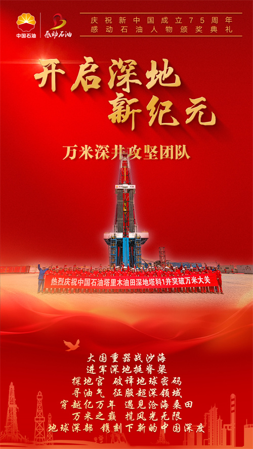 万米深井攻坚团队接连攻克一系列世界级难题,推进我国首口万米深井——深地塔科1井突破万米大关,使其成为世界陆上第二、亚洲第一垂深超万米井,并创造了当今世界钻探1万米深井用时最短纪录。来自几十家单位、数万名前后方的工作人员,日夜奋战、通力协作,在9000米以深的“无人区”钻出一条勘探“新路”,引领我国步入深地“万米时代”,彰显出中国石油当好能源保供“顶梁柱”的勇毅担当。