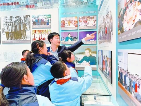 在广州工程公司科学家精神教育基地,宣讲员为小学生讲解时代楷模陈俊武院士的先进事迹。