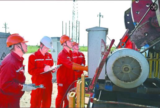 胜利油田孤东采油厂员工在GD9003井进行能耗测试分析。朱克民 摄