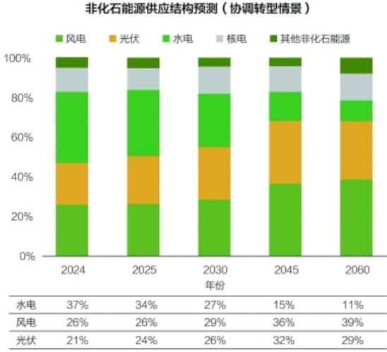 2024年,我国非化石能源供应总量增至11.8亿吨标准煤,以电力形式为主。其中,水力、核能、风力、光伏发电量分别约为1.44万亿、0.45万亿、1万亿、0.81万亿千瓦时。非化石能源发电装机容量、发电量以及在一次能源总量中的份额稳步提高,正在成为我国能源系统增量的主体,远期将成为我国的主导能源。