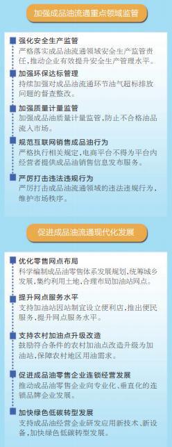 编者按:成品油是关系国计民生的基础性和战略性资源,与国民经济运行和人民生产生活密切相关。近日,国务院办公厅印发《关于推动成品油流通高质量发展的意见》(简称《意见》),首次针对成品油流通全链条高质量发展出台专项文件,完善了成品油流通跨部门监管机制,加强了成品油流通重点领域监管,不仅为成品油市场发展指明了方向,也将对成品油市场调整变革产生深远影响。中国石油报本期《市场导刊》邀请业内专家,共同探讨《意见》对于成品油市场的影响,以及中国石油相关企业的应对措施。敬请期待。