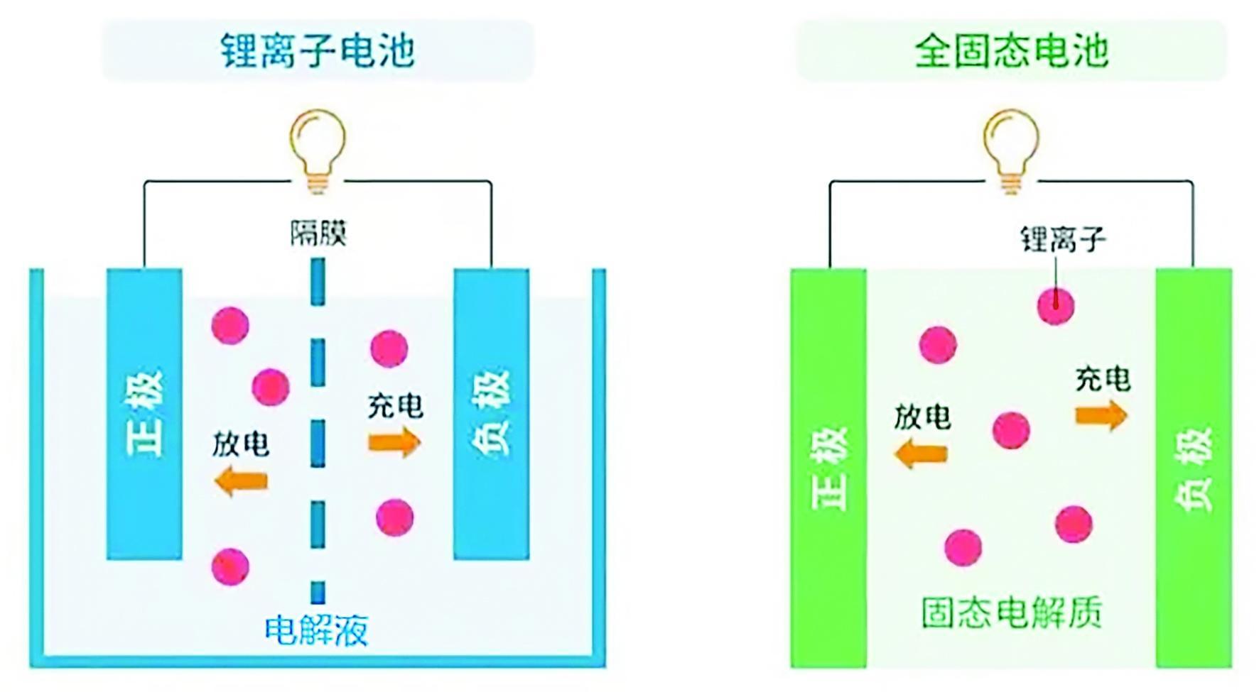 阅读提示靠着能量密度、安全性能等方面的优势,固态电池被视作下一代电动汽车发展的“终极解决方案”。固态电池是指采用固态电解质的锂离子电池。传统锂离子电池使用液态电解质作为离子迁移通道,通过隔膜隔离正极和负极以防止短路;固态电池则用固态电解质取代传统的隔膜和液态电解质,基本原理与液态电池相似,即带电离子在正极和负极之间往复移动实现充放电过程。