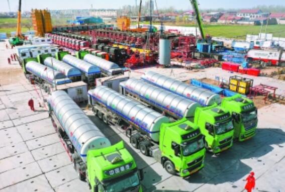胜利油田樊页102-1HF井、樊页102HF井压裂施工现场,员工正在做二氧化碳注入任务的准备。