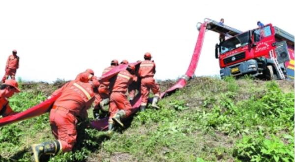 天津石化消防支队千里驰援辽宁盘锦抗洪救灾。