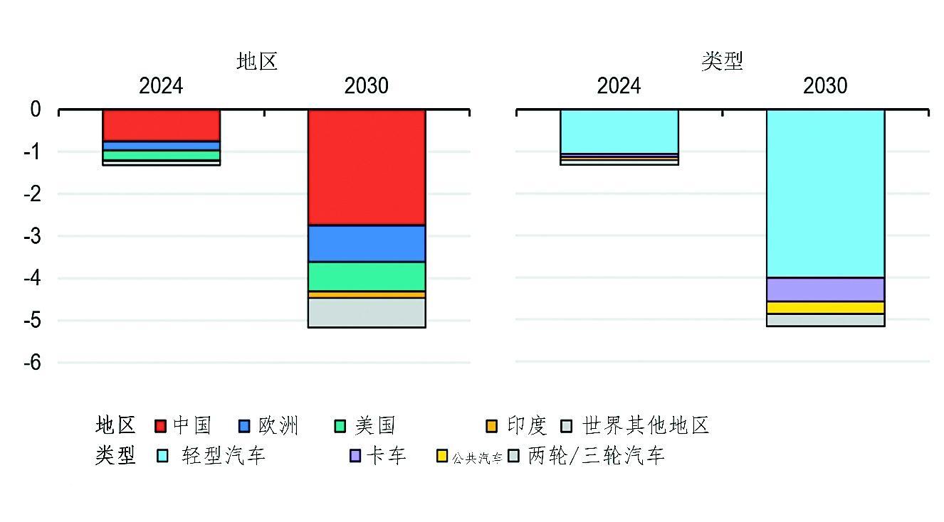 2024~2030年国家政策情景下分地区和类型的石油替代资料来源:国际能源署2025年版《全球电动汽车展望》报告