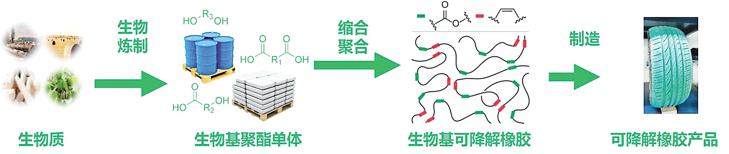 张立群院士领导的研发团队通过近20年努力,以生物基二元醇、二元酸、羟基酸等为核心单体,通过多元共聚首创了全球唯一生物基可降解橡胶产品系列,成功用于耐油、聚氯乙烯增塑、聚乳酸增韧等领域,还开发了高分子量、交联速度可控的丁烯二醇基生物基可降解橡胶,联合玲珑轮胎试制出全球首批生物基可降解轮胎,联合李宁推出了全球首款全降解运动鞋。