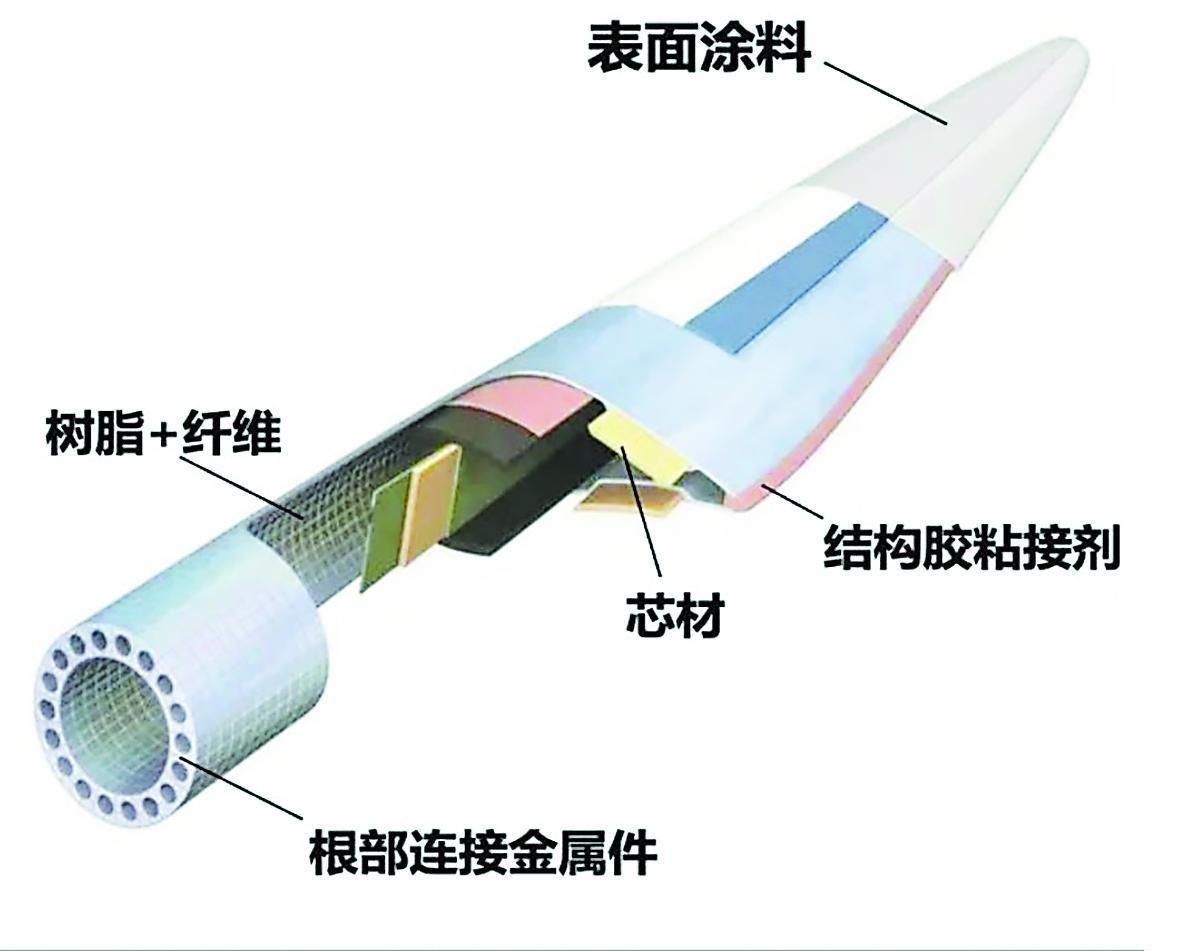 株洲时代新材料科技公司副总经理、总工程师冯学斌介绍,作为风电机组里捕获风能的核心部件,风电叶片的材料经历了从木质到金属再到复合材料的演变。其最核心的要求是高强度、高韧性、轻量化和耐腐蚀。在复合材料风电叶片中,基体树脂、增强纤维、泡沫芯材、表面涂料等材料均与高分子材料紧密相关。