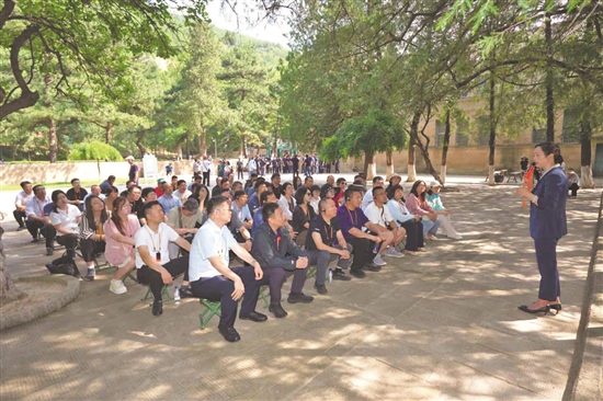 来到杨家岭革命旧址,延安革命纪念馆文博副研究员冯建霞现场讲述“中共七大的历史功绩及其现实启示”,以“历史场景还原”的方式,带领大家沉浸式揭开中共七大召开背后的故事,让中共七大从历史课本中的“重要会议”,变成了一部可触摸、可借鉴的“执政宝典”,让听众在回望中明晰了以史为鉴的深刻内涵。