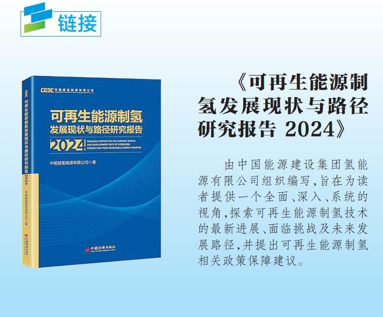 [中国石化报 2025-08-11]近日,中国经济出版社出版发行《可再生能源制氢发展现状与路径研究报告2024》。该书不仅是对当前可再生能源制氢发展全貌的一次系统画像,更是对未来发展趋势的一次深刻洞察。本版摘录书中部分观点内容,敬请关注。