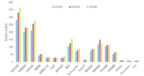 国内外主要上市油服公司2022~2024年营业收入情况
