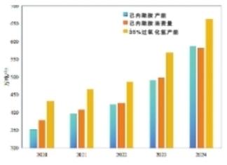 其中,过氧化氢是环己酮氨肟化反应的重要原料,我国过氧化氢用于生产己内酰胺的产能超650万吨/年(以纯度35%计),占过氧化氢总产能的1/3左右,己内酰胺产能的不断扩张将持续带动过氧化氢产能增加。