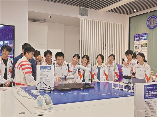 “听讲解、看成果、动手试”——作为研学的核心环节,科创体验活动让学子们与前沿科技来了一次“亲密接触”。学子们先后走进生物医学工程系、智能机器人实验室、电子科学创新展区等核心科研场所。实验室导师用通俗易懂的语言讲解复杂原理,结合生活案例讲解技术应用;在智能机器人实验台前,学子们在导师的指导下操作机械臂完成抓取、组装等动作,兴奋之情溢于言表。
