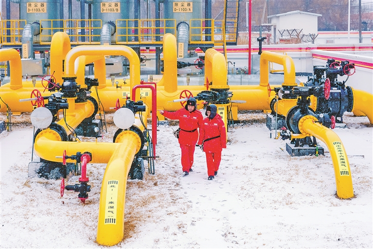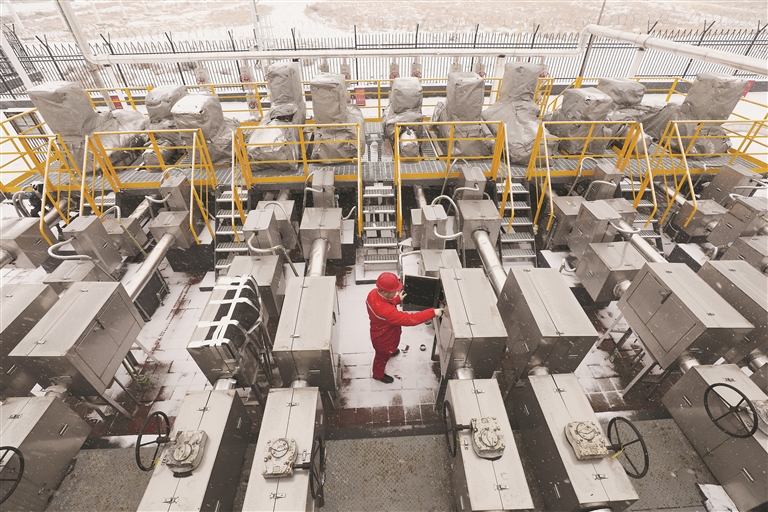 近日,寒潮席卷,降雪频发,气温骤降,天然气用气量随之大幅攀升。大庆油田天然气分公司闻雪而动、迅速响应,多措并举。精准匹配下游用气需求。同时,加密管网伴热系统、生产单元关键区域等重点部位的巡检频次,全面排查冻堵隐患,全力保障极寒天气下天然气安全稳定供应。张健摄影报道